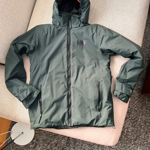 Helly Hansen vinterjacka i storlek 176. Jackan är röd med mörkblå kontrastpartier och har dragkedja framtill. Modellen är unisex och har huva samt fickor med dragkedja.