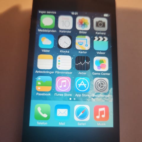 Apple iPhone 4 mobiltelefon i svart färg. Kompakt smartphone med pekskärm och fysisk hemknapp. Passar för samtal, meddelanden, surf och appar. Levereras enligt bild, med tillhörande förpackning.