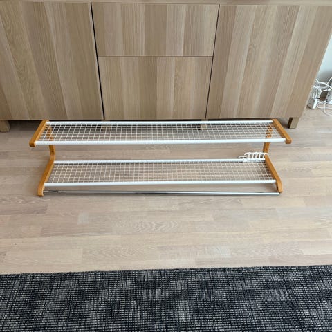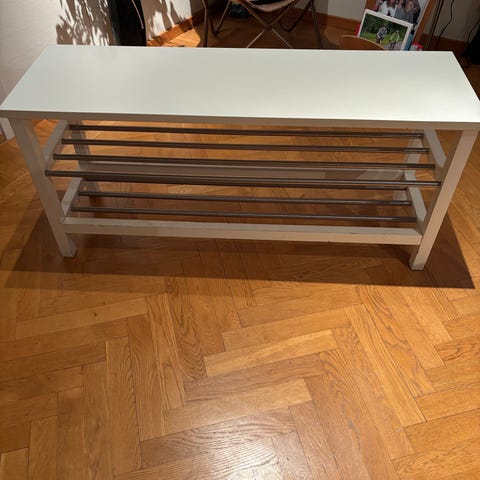 Skohylla. Massivt trä, vadderad sits i konstläder och två rymliga metallhyllor för skor. Perfekt för både stora och små hallar. 80x45x35cm