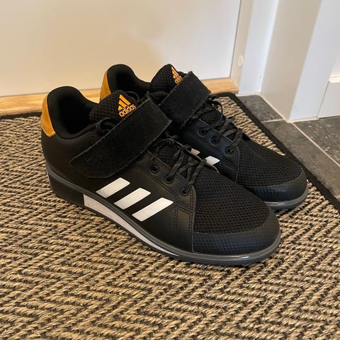 Säljer ett par svarta Adidas powerlift träningsskor som är lyftarskor till gymmet. Skorna har en klack för att hjälpa till vid ex knäböj. Skorna har både snörning och kardborreband för extra stöd. Ovandelen är i mesh och syntetmaterial, vilket ger bra andningsförmåga och komfort. Storlek 40 men små i storlek, passar 39!