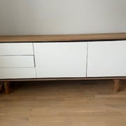 Jätte fin finsk design skänk i valnöt med handtag och underrede i stål. Den har rejält stöd i mitten så ingen risk att den sjunker ihop över tid. Inga märken. Går att byta handtag