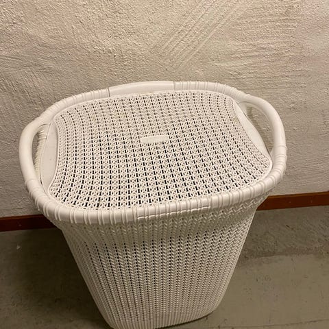 Flätad tvättkorg rotting med lock vit