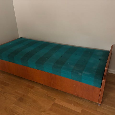 Unik retro vintage mid century dagbädd/soffa i ljus träram, från 50/70talet i toppenskick. Okänd designer.