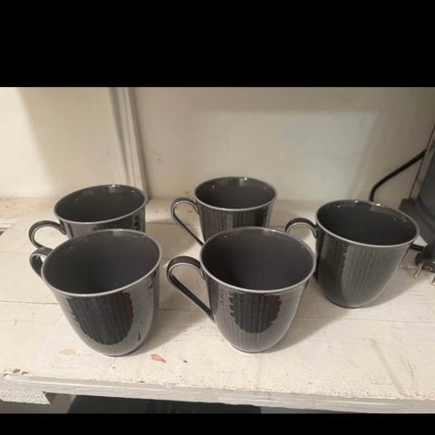7 st Swedish grace tallrikar i mörkgrått, finns att hämta i Älvsjö