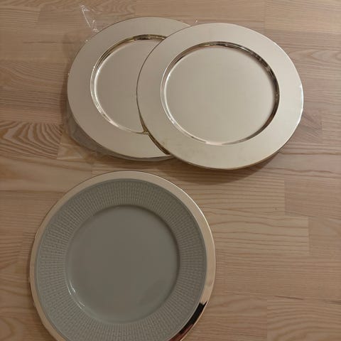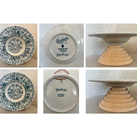 Vackra handmålade tallrikar i glas med grå bakgrund och 3 olika mönster.