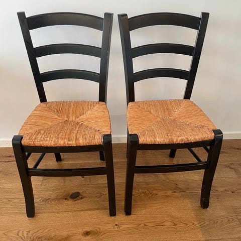Ikeas Stockholm stolar i svart. Säljs inte längre i butik.