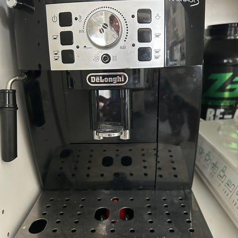 espressomaskin i svart utförande. Maskinen har inbyggd droppbricka och ång-/mjölkskummare för tillredning av kaffe- och mjölkdrycker.