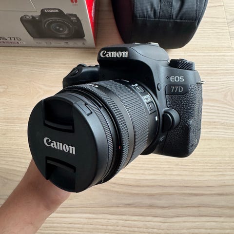 Canon EOS 7D digitalkamera med objektiv och extern blixt