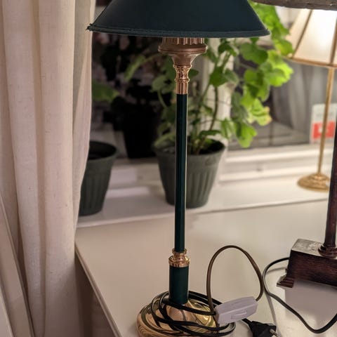 En gammal strålkastare från försvaret. Märke Eisemann, ombyggd till 220 el, med två knapplägen. Dock har den slutat fungera , men den som är händig vet säkert hur man kan få igång den . Annars en rolig och udda antik inredningspryl inköpt på Antikaffär.