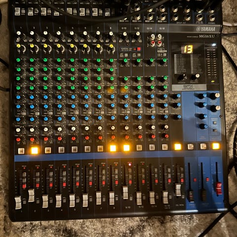 Analogt mixerbord. Har 12 kanaler med individuella volymreglar, EQ och digital effektsektion. Enheten lämpar sig för ljudmixning vid till exempel repetitioner, liveframträdanden eller inspelning. Nätadapter ingår.