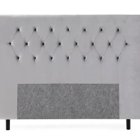 Mio sänggavel 180 i beige tyg. Klädd i textil av 100 % polyester. Gaveln har en vadderad, knapptuftad framsida och är avsedd att placeras bakom sängen som ryggstöd och dekoration. Passar som komplement till säng i motsvarande bredd och kan kombineras med övrig sovrumsinredning i liknande textil och färg.