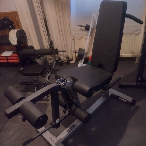 Viktmagasin: 95 Kg solida järnplattor där varje platta väger 4,5 kg