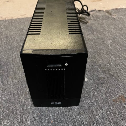 2st FSP Group FP1000 UPS Batteribackup med kapacitet på 1000 VA. Enheten har flera uttag på baksidan för anslutning av datorer och annan utrustning. UPS:en är avsedd för att ge reservkraft och skydd mot strömavbrott och spänningsvariationer i hem- eller kontorsmiljö. På framsidan finns display och strömknapp för övervakning och styrning av driftläget.