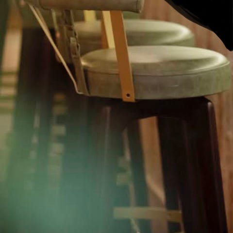 Barstolar i röd konstläder med kromad fot. Stolarna har stoppad sits och rygg med rutmönster samt fotstöd i metall. Passar till köksö, barbord eller liknande miljöer där hög sittplats önskas. 500kr för båda. Avhämtas i Tjällmo enl ök