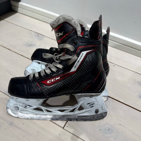 CCM Tacks AS 550 ishockeyskridskor i barnstorlek 36 (US 4, EU 36, UK 3,5). Färg svart med grå och vita detaljer. Regular passform enligt märkning i plösen. Skridskorna har hårt yttre skal för stöd runt fot och ankel, vit innersida med vadderad plös samt vita snören. Modellen är avsedd för ishockey och allmän skridskoåkning på is. Lämpliga för barn/ungdom med skostorlek runt 36.