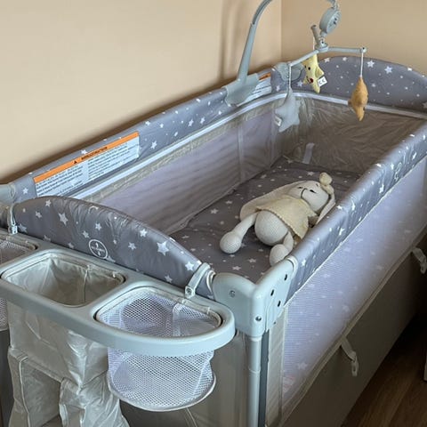 Fin begagnad hopfällbar resesäng med två madrasser. Endast avhämtning.