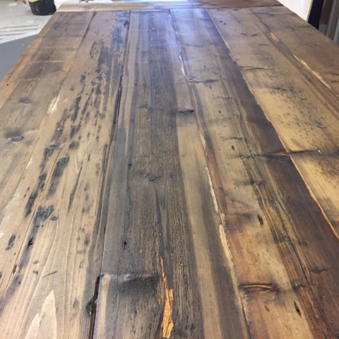Matbord byggda av återvunnet gammalt högkvalitativt virke.
