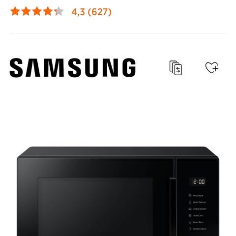 Säljer en rymlig och kraftfull mikro från Samsungs uppskattade F300G-serie. Denna modell är perfekt för dig som vill ha mer än bara uppvärmning tack vare den inbyggda grillfunktionen.