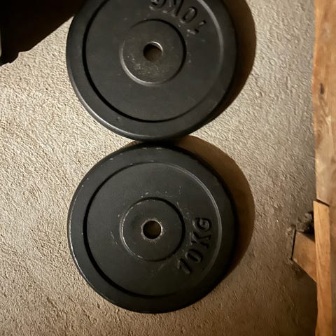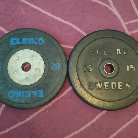 Två stycken 25kg viktskivor i järn för 25mm skolstänger.