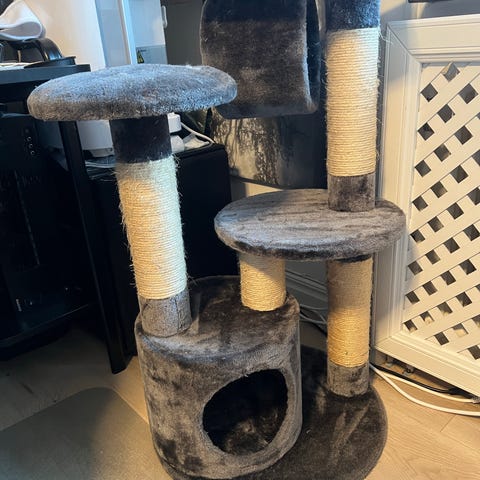 Katträd klösmöbel med liggplatser grå vit