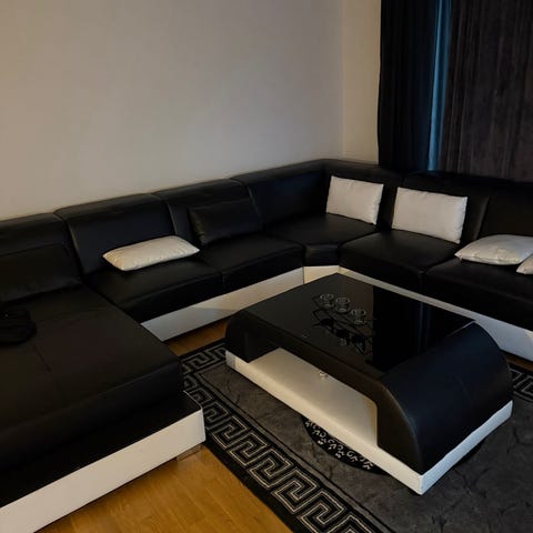 Soffan är svart och vit i läder/Skinn. Soffan är fräsh och finns för upphämtning.