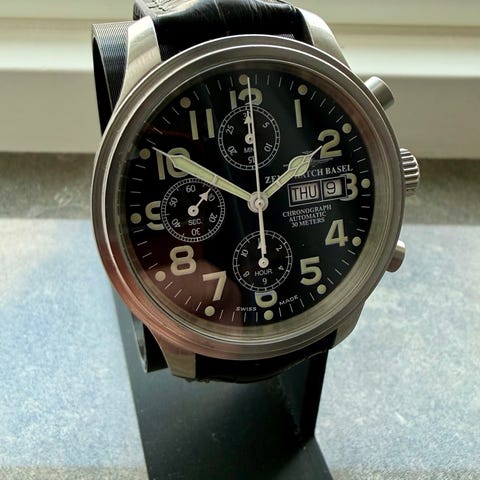 37 x 39 mm two-tone stainless steel and gold plated case and original bracelet with most links included (19cm+), perfect original sapphire crystal. Perfect white dial with lumed gold indices and hands.