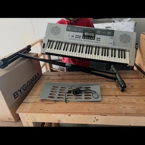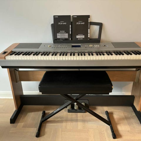 Digitalpiano i svart utförande med fullstor klaviatur. Pianot har flera knappar och reglage för olika ljud och inställningar samt inbyggd display. Det står på ett stadigt stativ och har anslutet sustainpedal. Passar för hemmabruk, övning och spel i mindre sammanhang.