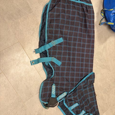 Två supersnygga Rhino utetäcken strl:140cm perfekt för den mindre stora hästen eller en stor D-ponny. Nypris för båda över 5000kr. Dessa har slitet innerfoder som behöver lagas och det tunna täcket har bara ett bogspänne. Kan skickas