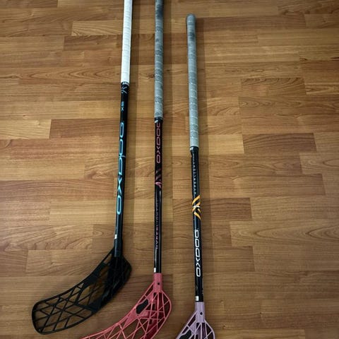 Ett urval av innebandyklubbor. Inkluderar modeller från varumärken som Unihoc, Oxdog och Zone. Första bilden KH special edition oxdog ultimate light 96cm 500kr. Andra bilden unihoc unislim 100cm 600kr. Tredje bilden zone airlight 100 cm. Fjärde bilden oxdog ultimate light 100 cm 1000kr