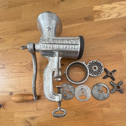 Manuell köttkvarn från Husqvarna, modellnummer 10.