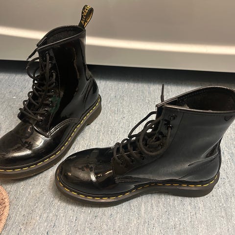 Svarta Dr.Martens Jadon med plattform i storlek 39. Knappt använda, fåtal gånger förra säsongen. Väldigt fint skick. Dragkedja finns på insidan av skon.