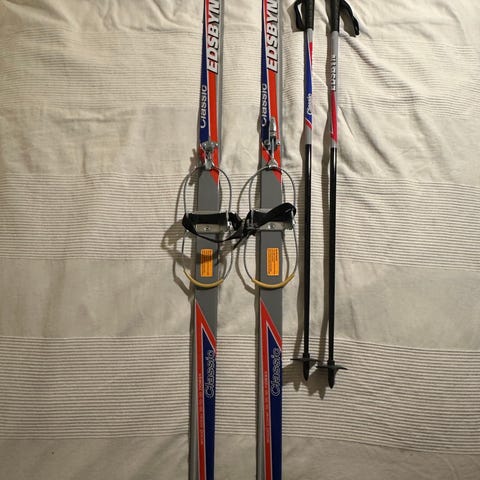 Fischer längdskidor (130cm) med stavar och pjäxor (stl 36)