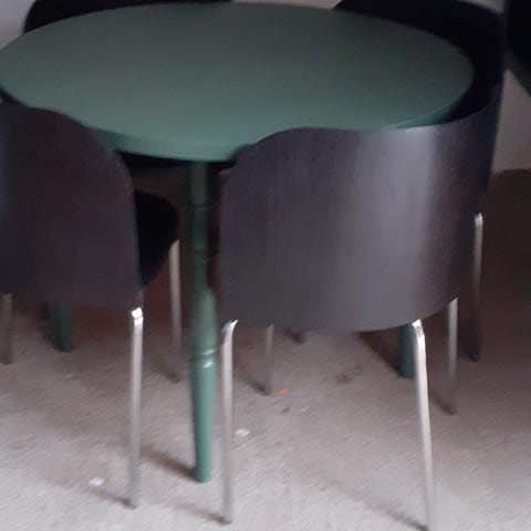 Äldre matgrupp 4 stolar 2 karm stolar bordert är ca 165 långt 109 brett går att göra runt
