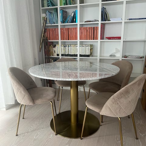 Marmor matbordet med 4 stycken stolar.