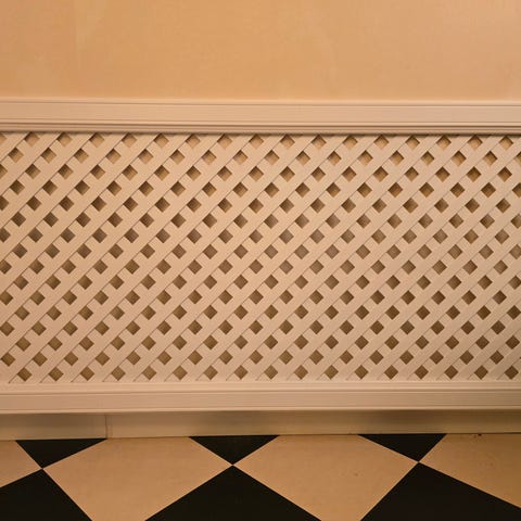 2 st handsnickrade elementskydd, vitmålad träram med rotting. Gott skick, endast en liten skada på den ena rottingsidan, kan lätt målas om