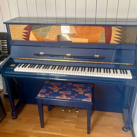 Yamaha upprätt piano i svart högglansfinish. Pianot köptes ny från Klaviatur i Stockholm i november 2024 och spelades på i 3 månader. Medföljer matchande svart pianopall med stoppad sits.