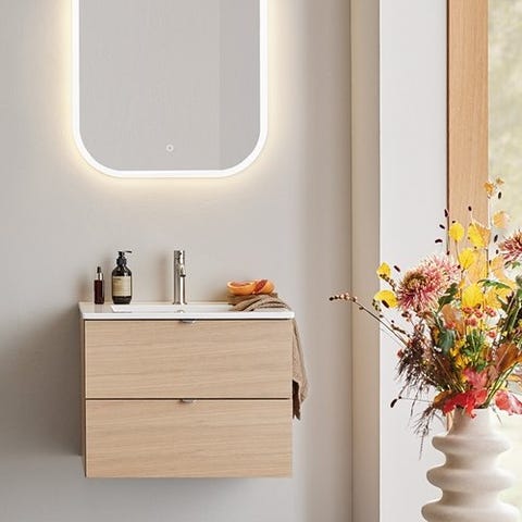 Hafa Go 600 Tvättställsskåp men porslinstvättställ är praktiska och stilrena badrumsmöbler med släta fronter. Sätt din stil genom att komplettera med något av våra handtag. Mjukstängande lådor med fullutdrag ger bra överblick över innehållet.