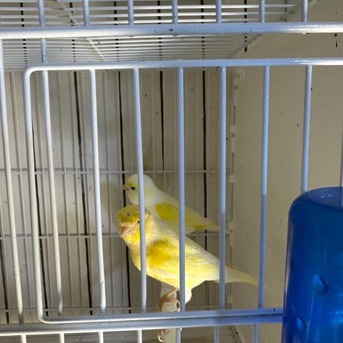 De vill gärna vara fria en stund under dagen och är vana att få färska grönsaker, hirsh och frön.