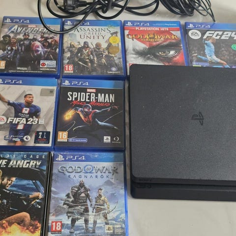 SONY PlayStation 4 CUH-1216B 1TB. PS4 spelkonsol med en DualSchock4 trådlös handkontroller (original), USB kabel, HDMI-kabel och strömkabel. Originalkartong finns men skickas inte med vid frakt. Både spelkonsol och handkontroller är testade och båda fungerar.