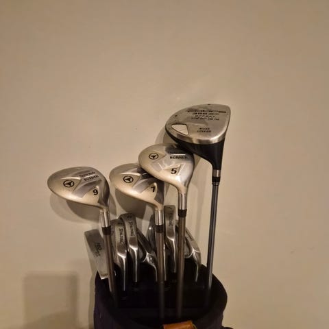 Inklusive golfbagen. Jag kan inte mycket om golf (ingenting) så kanske köper du grisen i säcken eller så är det här en guldgruva. Det har stått i källaren och min sambo har fortfarande inte börjat spela så nu ryker det till någon som faktiskt kommer ta sig till golfbanan.
