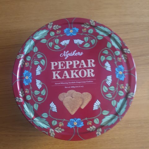 Ett sortiment av kakburkar i olika utföranden. Inkluderar märken som Deluxe, Stollwerck och De Beukelaer.