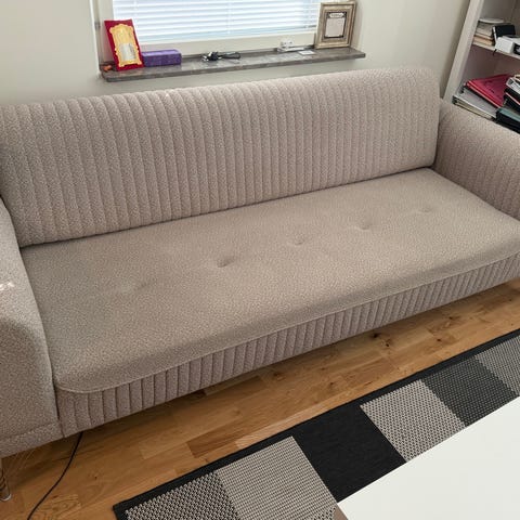 Robust bäddsoffa med divan med förvaring. Slitstark tyg i microfiber, tvättbar.