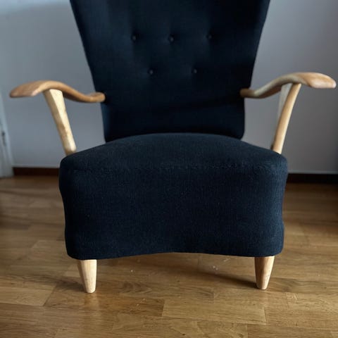 Fåtölj passa bra med andra klassisk dansk design som Wegner Jacobsen och Henningsen.