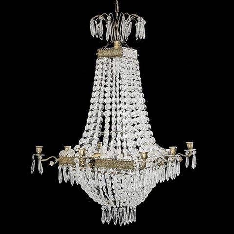 Kristallplafond taklampa i mässing med droppformade kristall prismor. Lampan är avsedd för montering i tak och ger ett rikt ljusspel genom de många kristallprismorna. Passar i exempelvis vardagsrum, sovrum eller hall. Ljuskällor monteras inne i armaturen bakom prismorna. Klassisk design med rund form och dekorativ mässingsfärgad stomme.