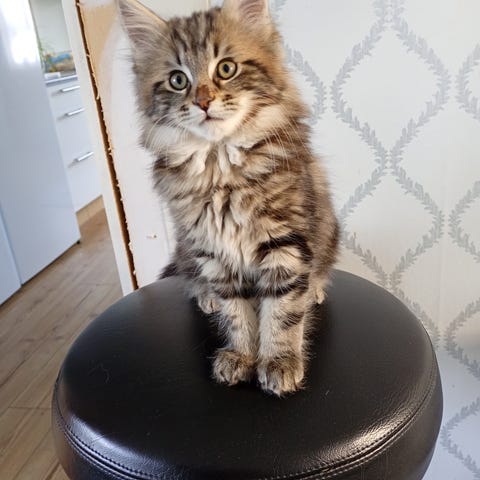 Vi har mamman hemma och hon är den mest kärleksfulla, trygga och härliga katt vi någonsin haft. Envis som få och vill alltid vara med oss! Pratig och väldigt trevlig! Tillgiven och rolig 🥰