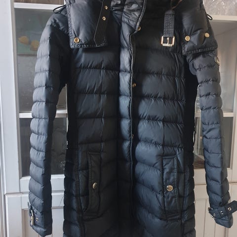 Burberry vinterjacka för herr i storlek S. Jackan är svart och har yttertyg i bomull. Modellen är vadderad med quiltad design och har hög krage samt avtagbar huva. Flera framfickor med dragkedja och knäppning med dragkedja och tryckknappar. Passar som varm ytterjacka under kalla vintermånader. Och den kan även bli en väst perfekt till våren. Priset kan diskuteras