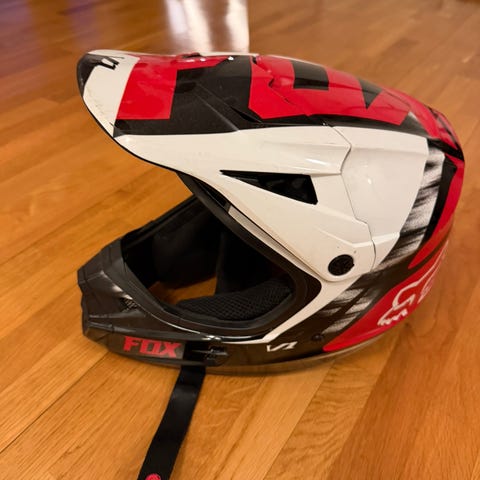 Hej. Säljer en scott hjälm i storlek m 50-51 junior hjälm. Har ritat över ett klistermärke med en penna som inte blev så bra som syns på bild. Men inget som stör går säkert att fixa.