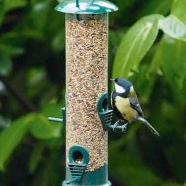 En fågelmatare för frön och en för nötter