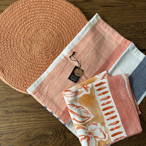 Jag har en bordslöpare i sammet och guld detalj för 50 kr.