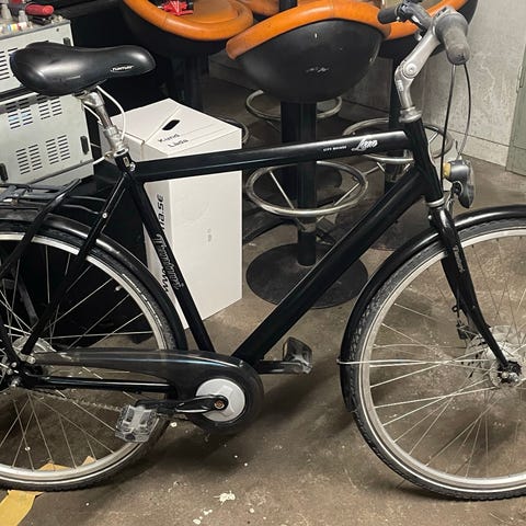 Cykel i fint skick, 28 tum hjul, treväxlad. Fina däck, belysning. Fungerar utmärkt, bara att trampa iväg i vårsolen.